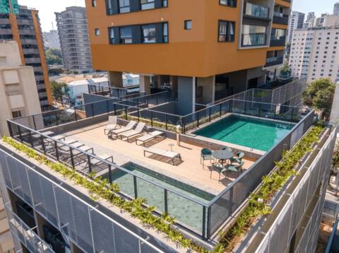 Fotos reais do imóvel no 5º andar do Bauhaus Pinheiros – moderno, funcional e pronto para morar.